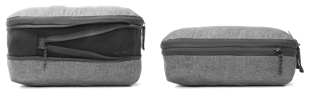 Na trhu existuje mnoho cestovních "organizérů", ale ty řeší jen roztřídění pro větší přehled a pořádek. Relativně nedávno jsem se však dozvěděl o existenci kompresních organizérů, které krom toho také zmenší objem o přítomný nadbytečný vzduch. Princip je jednoduchý: po obvodu obalu je dvojitý zip - první zapnutí uzavře obal a to druhé stlačí objem na cca polovinu.